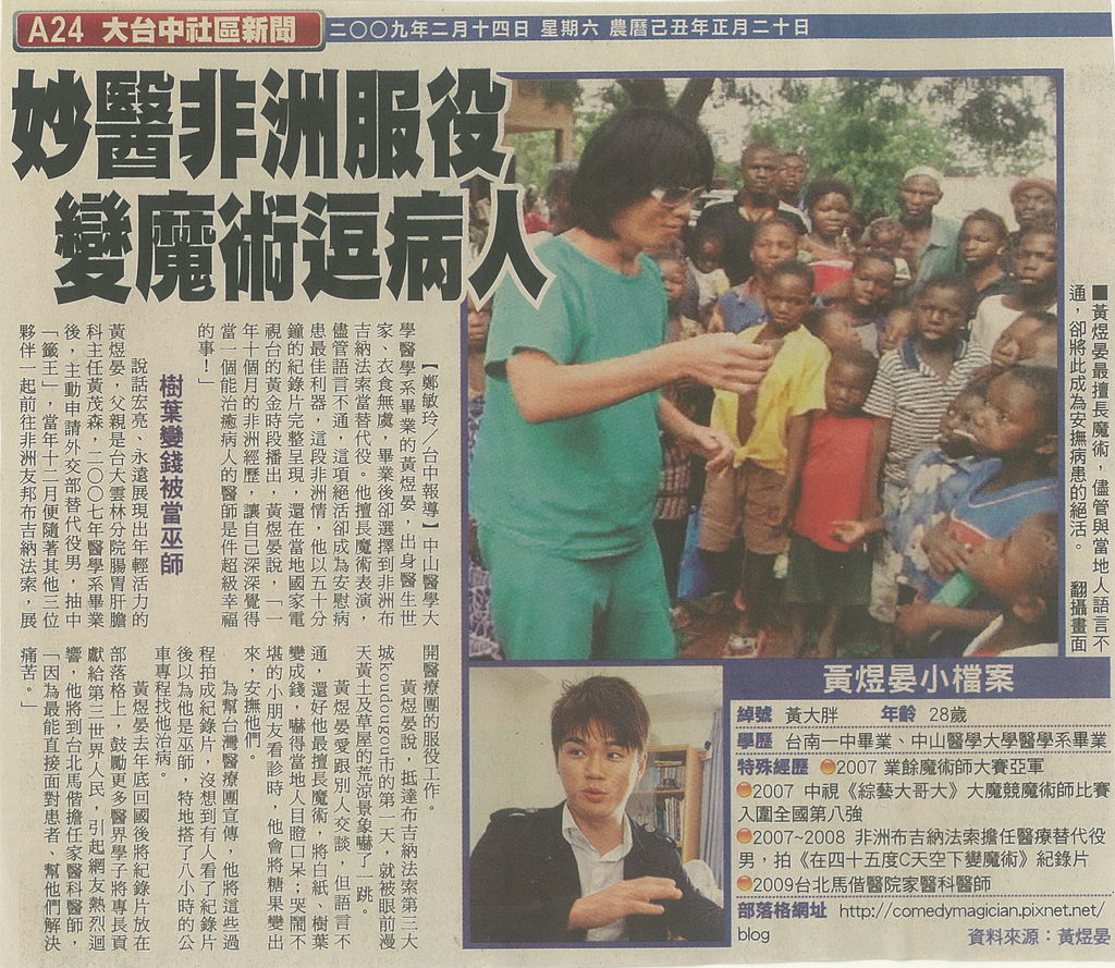 非洲魔術醫師 Eason 黃煜晏 簡歷