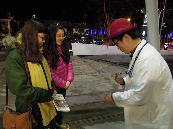 今晚在台東,真的有夠冷清,路上都沒人,開車繞了一圈,最後還是回到了本來設定的台東誠品,鎖定愛書人,本以為今晚的募款大概也會冷清清,想不到第一個觀眾就很熱情,連魔術都還沒看,聽了我此行是為了愛心捐款,馬上拿出她口袋裡所有的零錢給我做愛心,好感動,接下來的大學生們也是很支持,雖然沒有買書,但還是給了賞金做愛心,謝謝台東的朋友們,在冷冷的夜,讓我們感覺特別的溫暖!