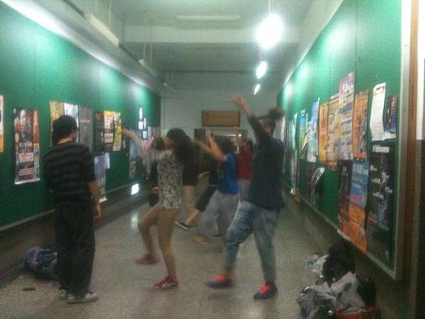 坐在實驗大樓前的廣場,我想重溫當年坐在這個位置的感覺。耳邊傳來澎湃的節奏聲,學弟妹們努力的跳著舞步,音樂反覆又反覆,小組長一直出來告訴大家哪邊要改進,動作的角度要怎麼擺,雖然舞感還不到位,但認真的態度真的有夠熱血的!Shit!太懷念的感覺了吧!我掩不住我心中的悸動!我真的超想大叫的現在!
